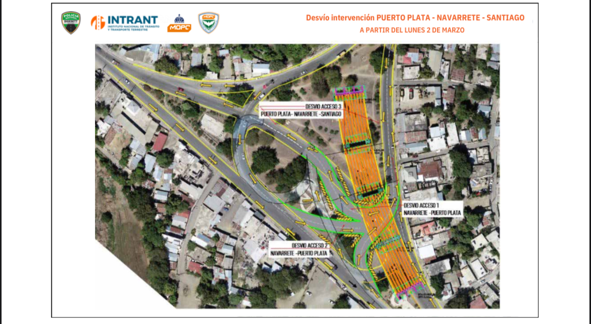 En tanto, los vehículos que vienen desde Navarrete hacia Santiago no se desviarán y seguirán derecho en el sentido Norte–Sur por la carretera Navarrete–Puerto Plata.